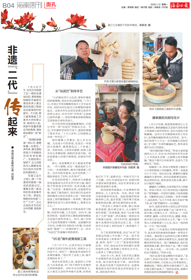 在昌江这片土地上,每一个非遗项目都是一段活的民族记忆。像黄玉英一家这样的传承故事并非个例。那些扎根黎乡的非遗“二代”“三代”,正让古老的手艺在时光中苏醒,焕发新生。