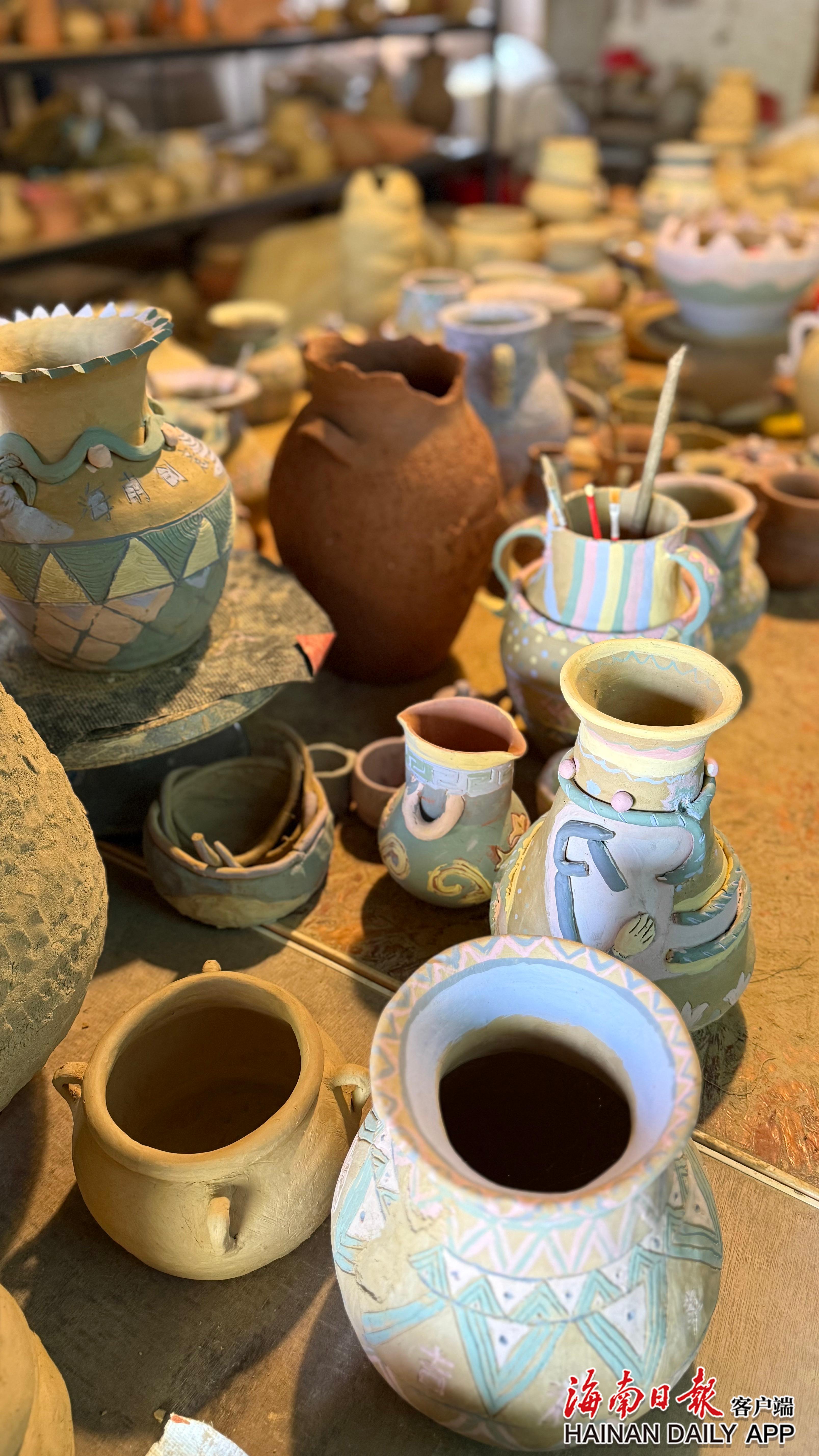 麦佳佳虽是婚后才开始系统学习制陶,但很有兴趣,上手也快。2025年,她和刘桂凤一起获评昌江黎族原始制陶技艺县级代表性传承人。如今,她7岁的儿子也经常跟着学习制陶。这温馨的亲子时光,仿佛当年刘桂凤与外婆、母亲相处的“重演”——非遗的种子,又一次在“玩泥巴”的童趣中悄然萌芽。
